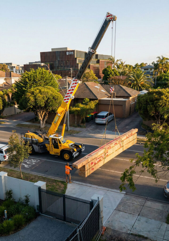 Recently, our team executed a massive prefab truss installation right on Glen Eira Road. Transporting heavy structural components to the site and craning them perfectly into place requires absolute precision, airtight planning, and the seamless coordination of multiple expert teams.